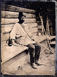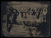 Амбротипы Надежды Храмовой Работы выполнены с помощью одного из первых методов создания фотографии - мокрому коллодионному процессу. Этот метод был изобретен в 1851 году. Широко используясь во второй половине XIX века вплоть до 1880-х годов, он оставался чуть ли не единственным способом получения изображения на стеклянной или жестяной пластине. Особенность процесса в том, что изготовление фотографии необходимо выполнить за 10-15 минут, пока светочувствительный слой эмульсии, на основе коллодия (раствора целлюлозы в эфире), не высох. В результате этого процесса получается негативное изображение на стеклянной пластине. Закрепленное с одной стороны лаком, с другой - черной краской, становится позитивное изображение и по сути вечное. (Амбротипы на прозрачном стекле 18х24 см.) ![]() © 2006-2011, ООО «Доронино».