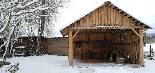 Кругом тишина и белоснежный снег, даже на кузне.