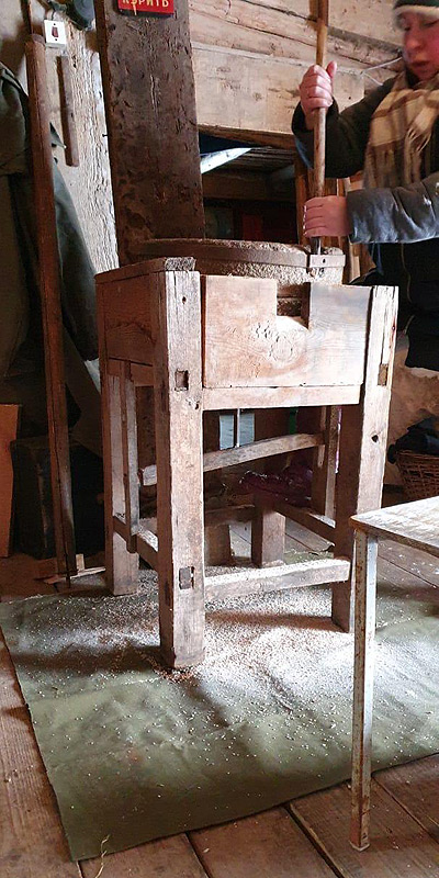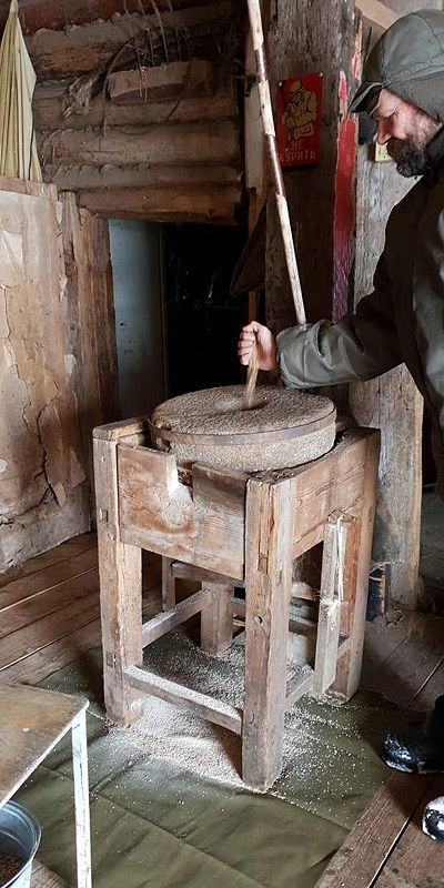 Занимаются они там помолом зерна в муку на ручных жерновах. Хозяин зерно сыпет, а хозяйка тяжеленный жернов крутит. Это, оказывается, - женская работа!