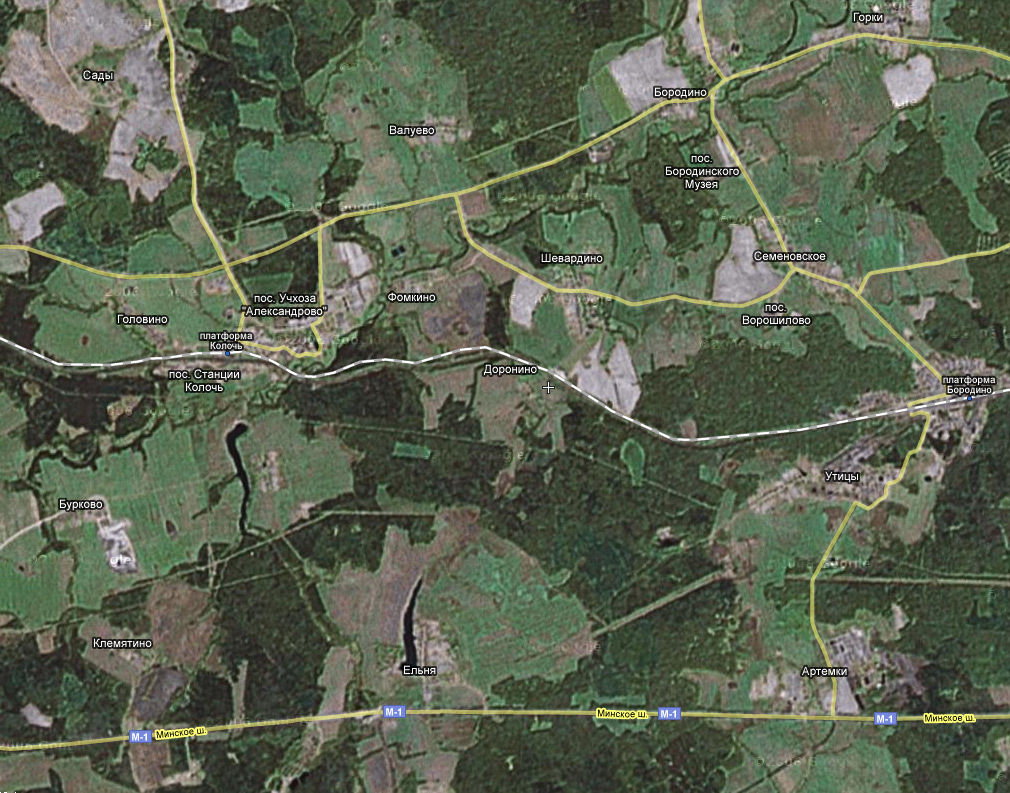 Современная карта от Google. 2003 г. Ссылка на карту в системе Wikimapia: http://www.wikimapia.org/#lat=55.4957769&lon=35.7931137&z=13&l=1&m=h&v=1.